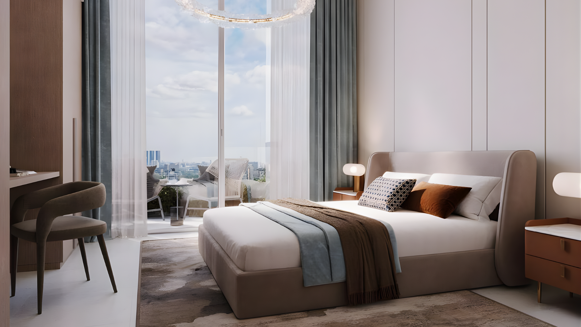 Azizi Noura, modern zarafeti yansıtan ferah ve işlevsel yaşam alanları sunuyor. Tavandan tabana pencerelerle desteklenen açık plan daireler, doğal ışığı maksimum düzeyde iç mekânlara taşıyor.