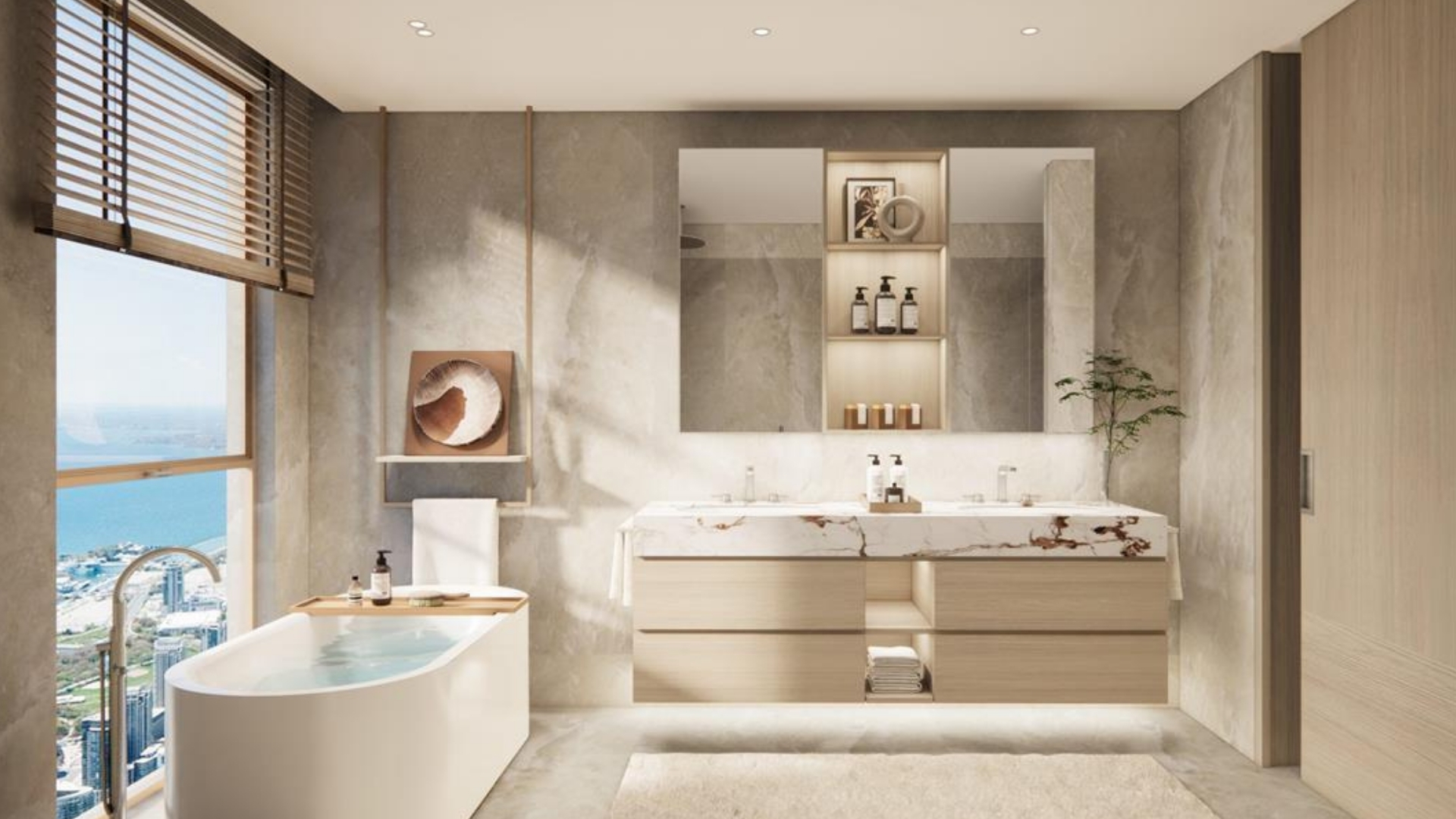 Bu proje, gökyüzüne yükselen kuleleriyle deniz ve şehir manzarasını bir araya getiriyor. Daireler, iç ve dış yaşam alanları arasında rahat geçiş sağlayacak şekilde tasarlandı.
